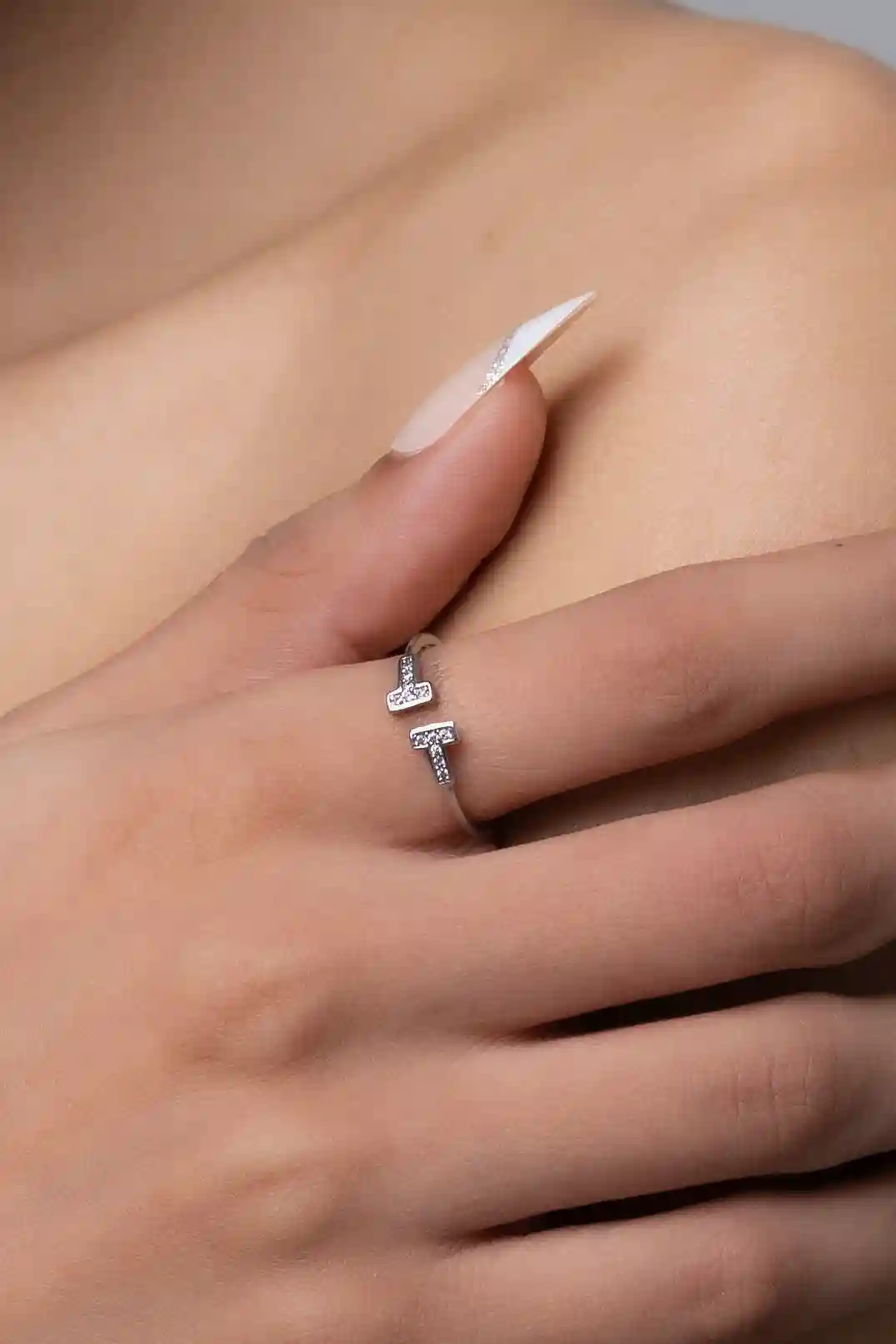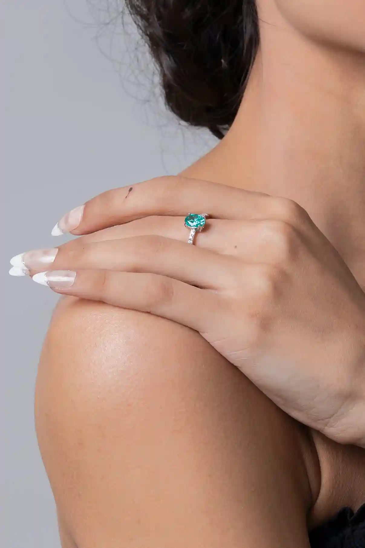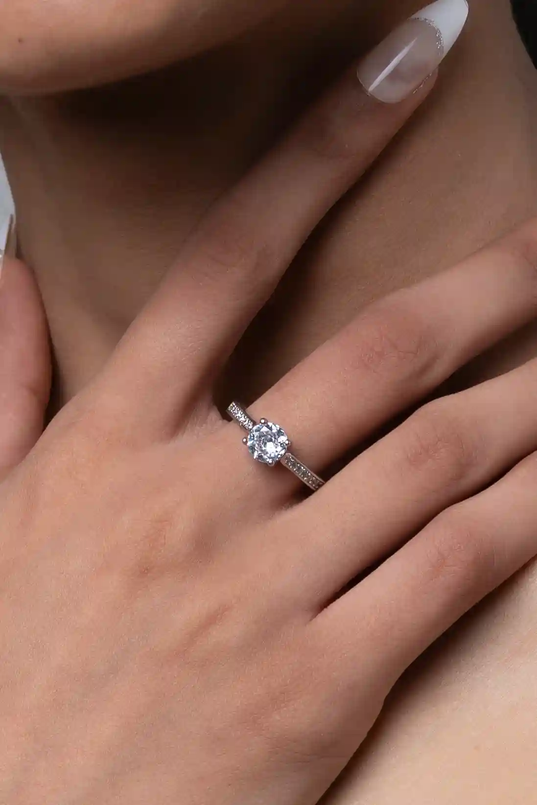 Simple quartz silver ring