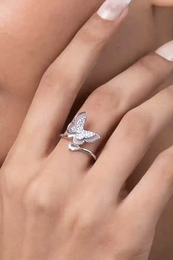 Silver double layer butterfly ring