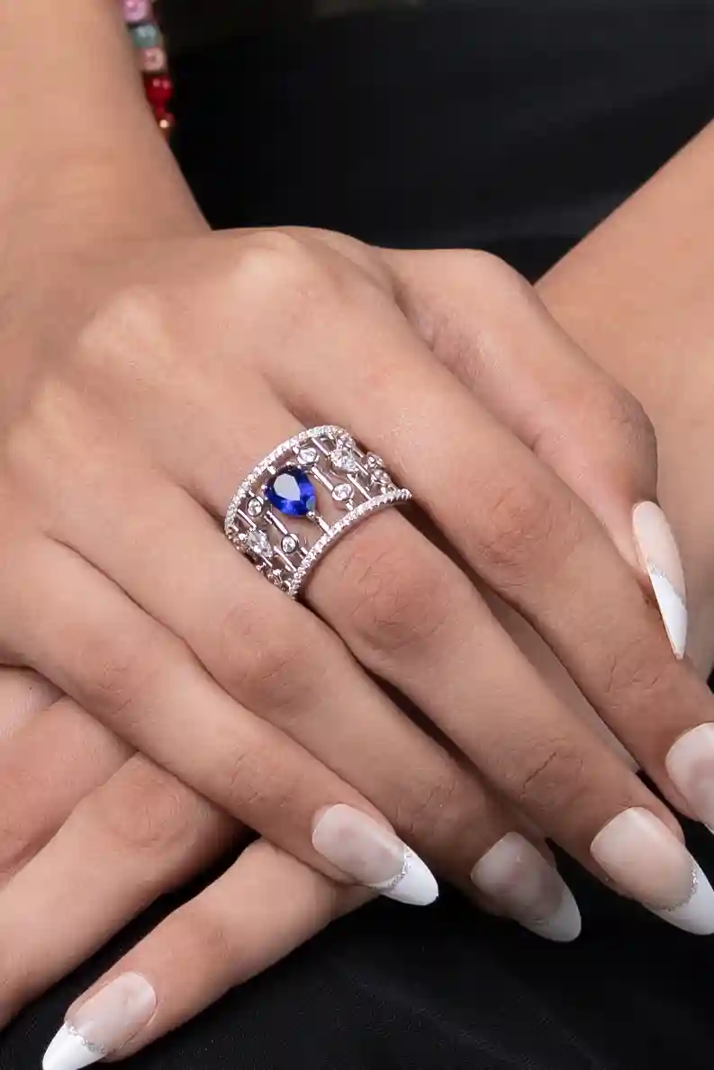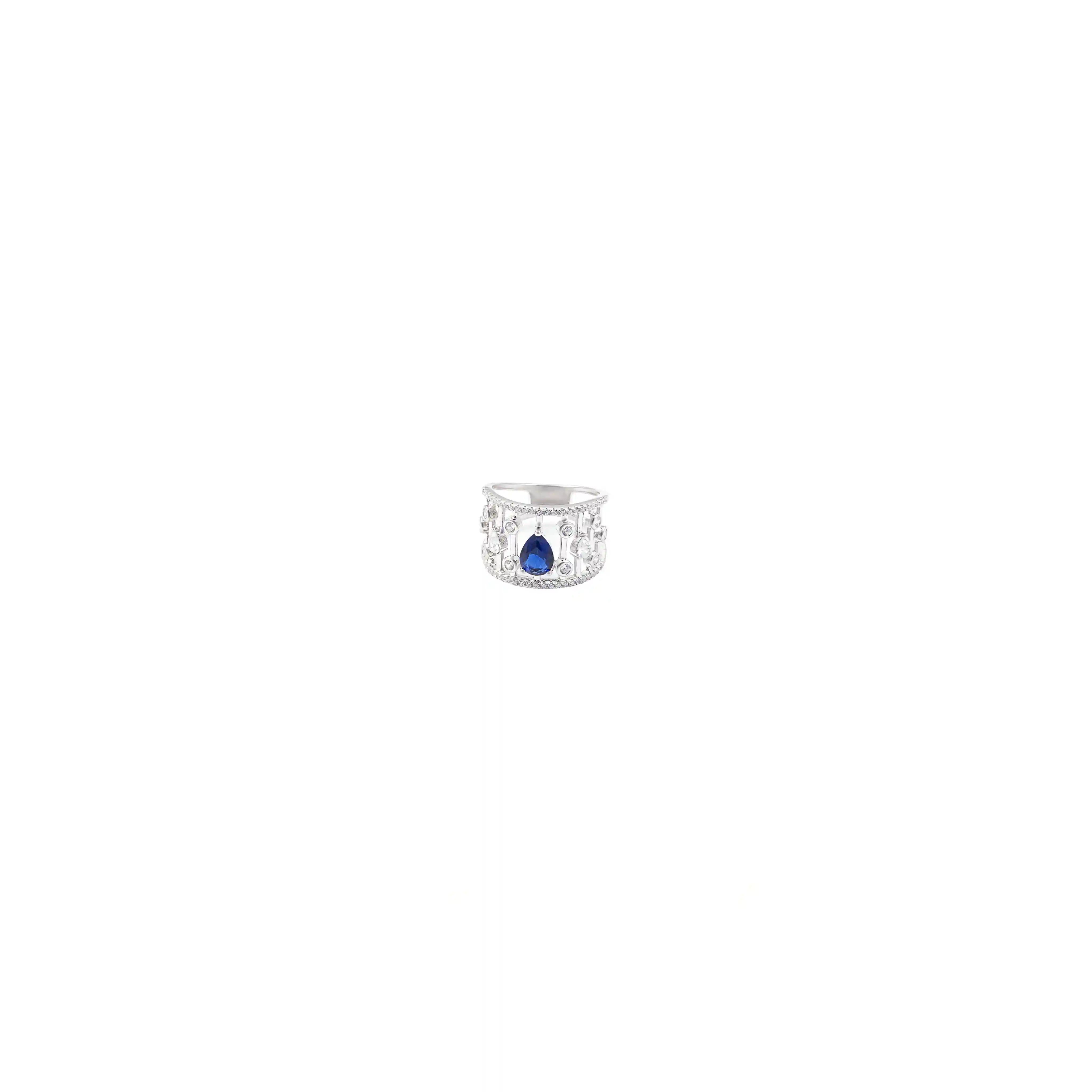 Blue sapphire drop silver ring