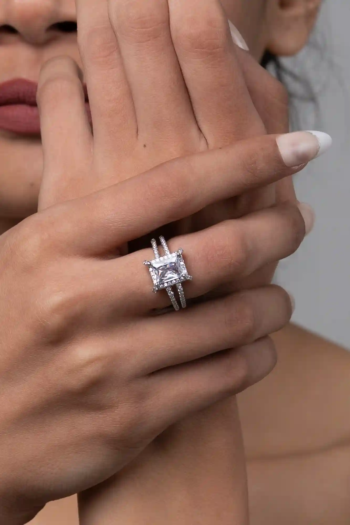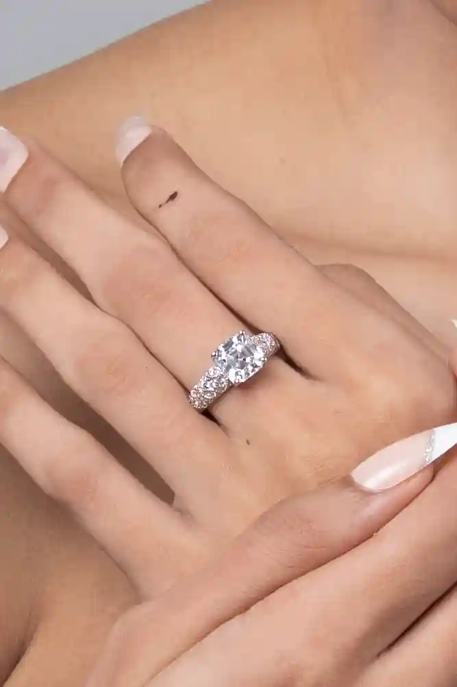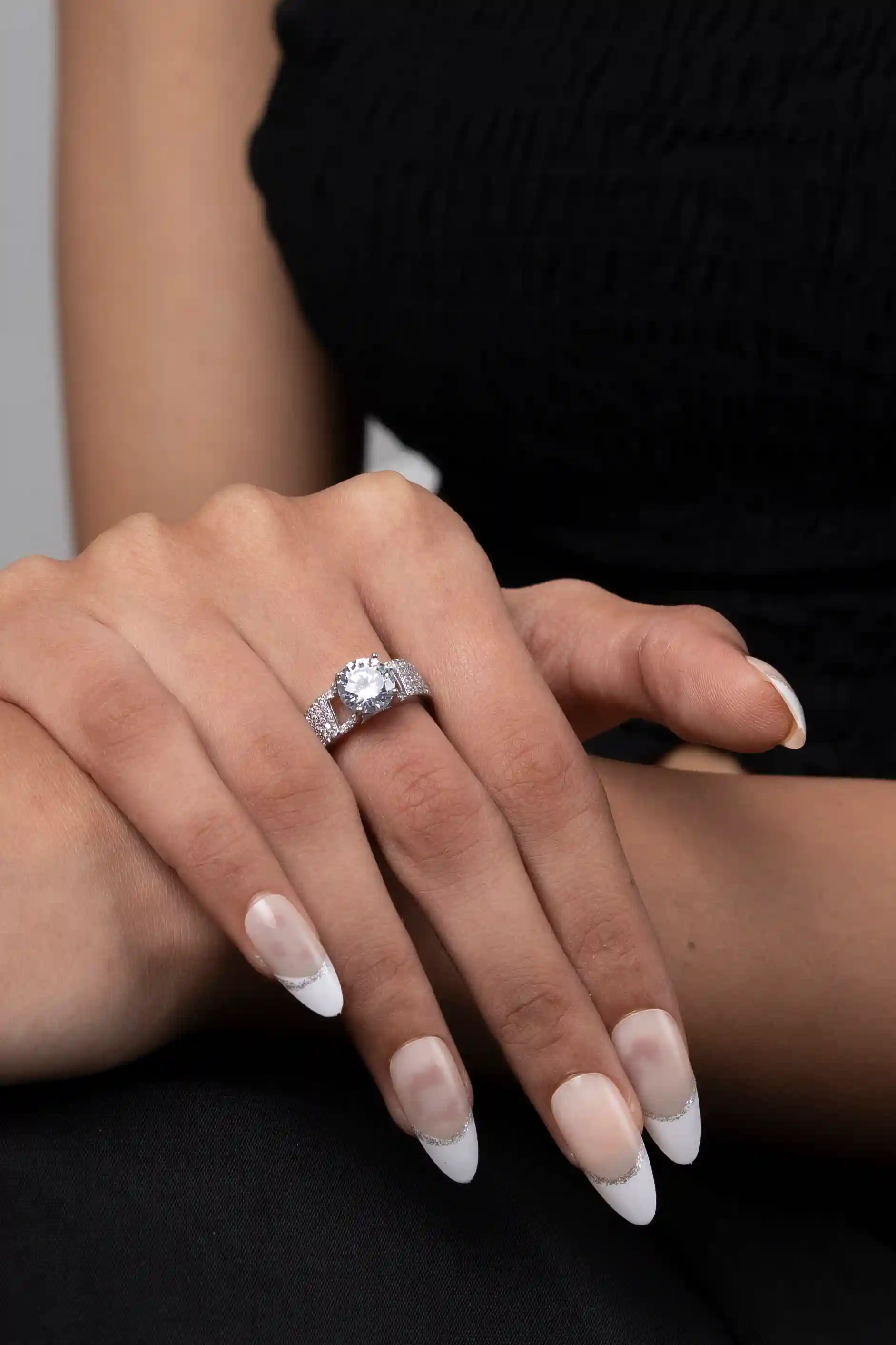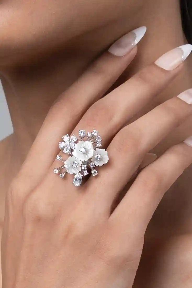 White crystal embroidery silver ring